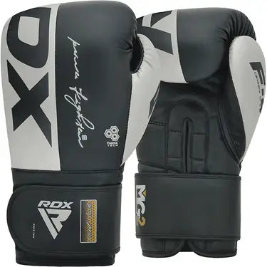 The F4 boxing gloves were designed with balance and boxing in mind. These sparring and training gloves are extremely durable and supremely comfortable to wear, the internal Satin Fabric is both breathable and soft to the touch. The F4 Boxing Gloves have multi-layered padding making them one of the most shock resistant and shock dispersive gloves available. These RDX F4s will protect your fists in all engagements allowing you to focus on the technique and power in your strikes. Kalix Skin Mayahide leather exterior - making it both durable and tear resistant. Multi layered Membrane Grid 2 Padding - for five layers of fist protection and impact resistance Quick EZ Hook and loop system - for secure closure and wrist protection Soft Satin Fabric interior - Both breathable and extremely soft TAKA Closure Strap System - for enhanced fitting, wrist support and easy wearability